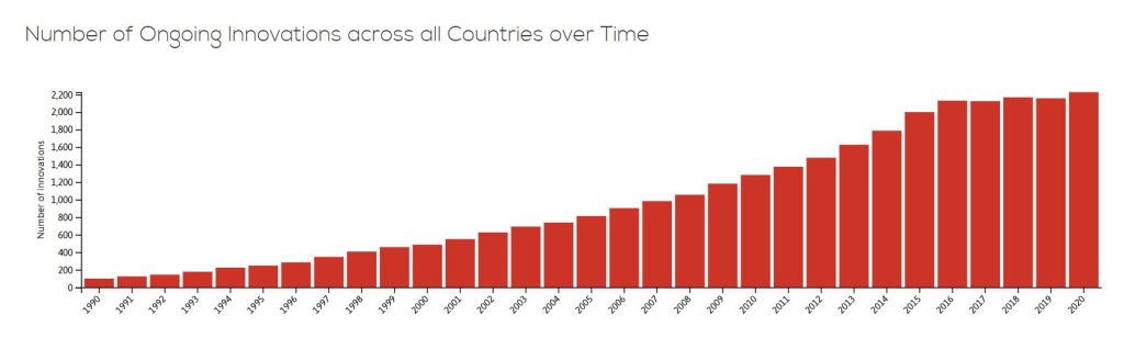 Participatory democracy innovations in 18 countries in Latin America. Data and visualization by Pogrebinschi, Thamy. (2017). LATINNO Dataset. Berlin: WZB.